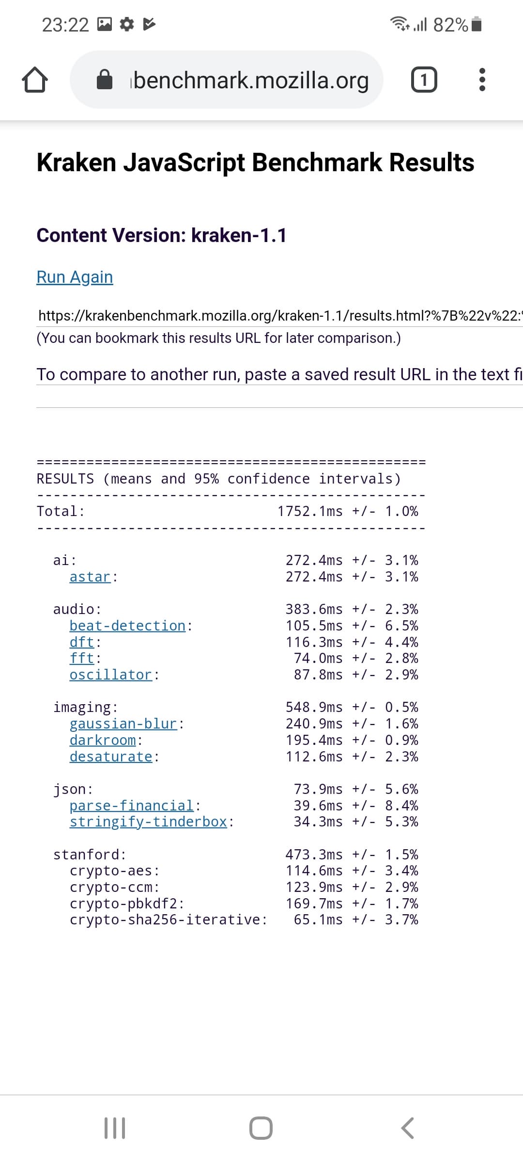 | Mozilla Kraken (мс, меньше — лучше) | 1752 | 2197 | 1769 | 1729 | 2222 |