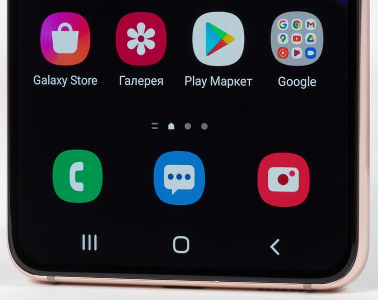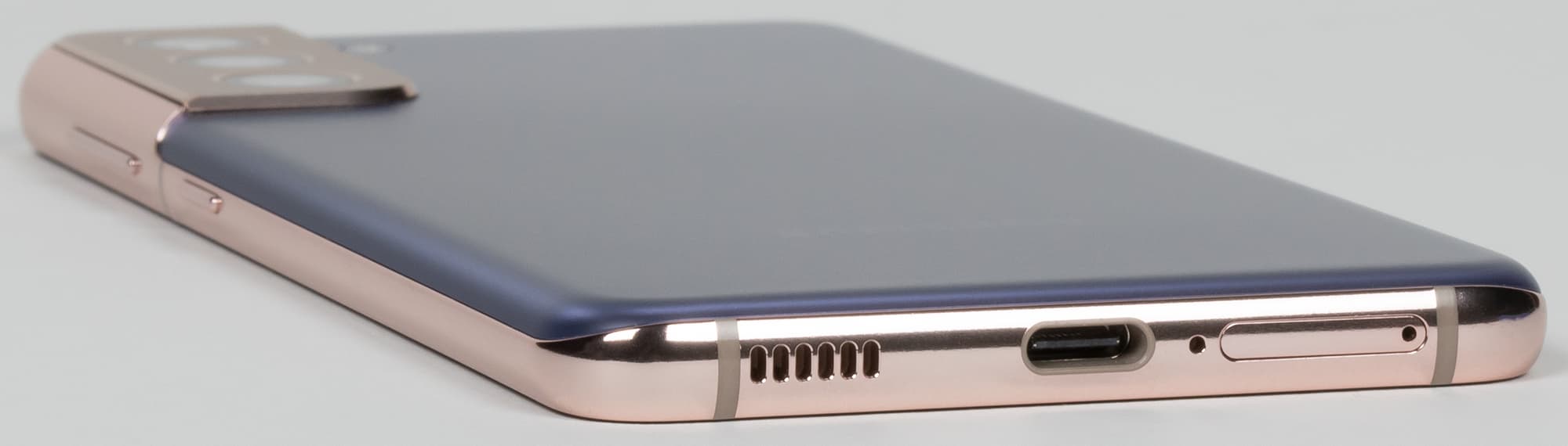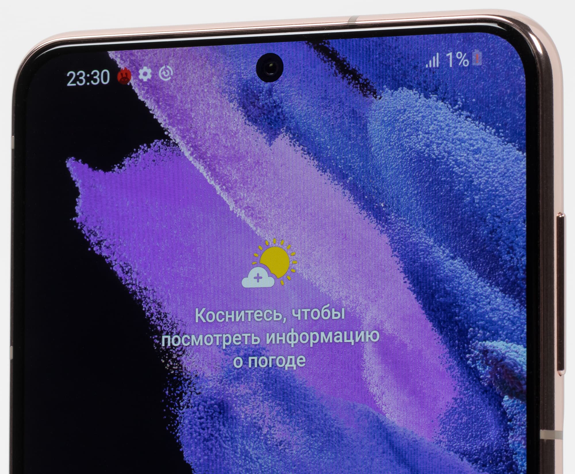 Экран у Samsung Galaxy S21 5G заметно темнее (яркость по фотографиям 103 против 109 у Nexus 7) и не имеет выраженного оттенка. Двоение отраженных объектов в экране Samsung Galaxy S21 5G очень слабое, это свидетельствует о том, что между слоями экрана нет воздушного промежутка. За счет меньшего числа границ (типа стекло/воздух) с сильно различающимися коэффициентами преломления экраны без воздушного промежутка лучше смотрятся в условиях интенсивной внешней засветки, но вот их ремонт в случае потрескавшегося внешнего стекла обходится гораздо дороже, так как менять приходится экран целиком. На внешней поверхности экрана Samsung Galaxy S21 5G есть специальное олеофобное (жироотталкивающее) покрытие (очень эффективное, гораздо лучше, чем у Nexus 7), поэтому следы от пальцев удаляются существенно легче, а появляются с меньшей скоростью, чем в случае обычного стекла.