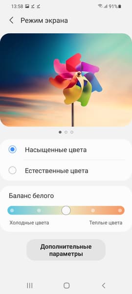 Фотография выше получена после выбора профиля Естественные цвета в настройках экрана, всего их два: