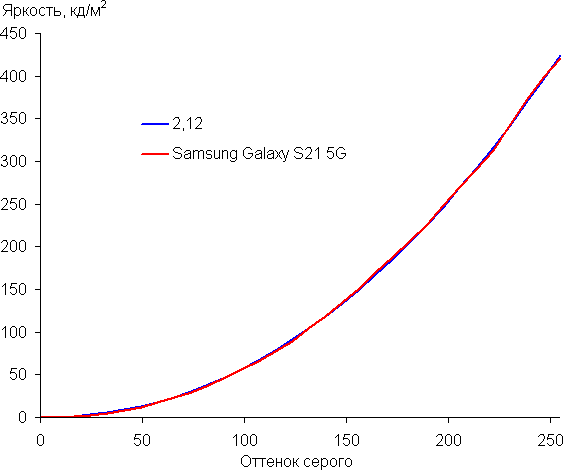 Напомним, что в случае OLED-экранов яркость фрагментов изображения динамично меняется в соответствии с характером выводимого изображения — уменьшается для светлых в целом изображений. В итоге полученная зависимость яркости от оттенка (гамма-кривая), скорее всего, немного не соответствует гамма-кривой статичного изображения, так как измерения проводились при последовательном выводе оттенков серого почти на весь экран.