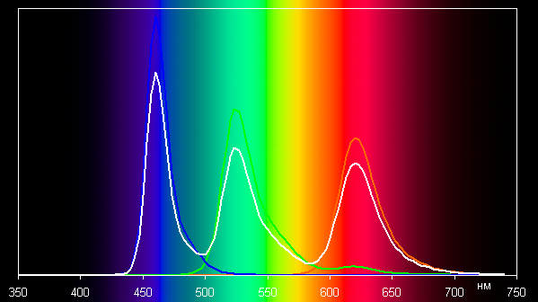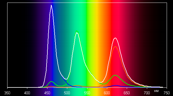 Без коррекции (профиль Насыщенные цвета) спектры компонент очень хорошо разделены (но какое-то подмешивание все же есть):