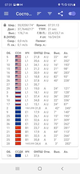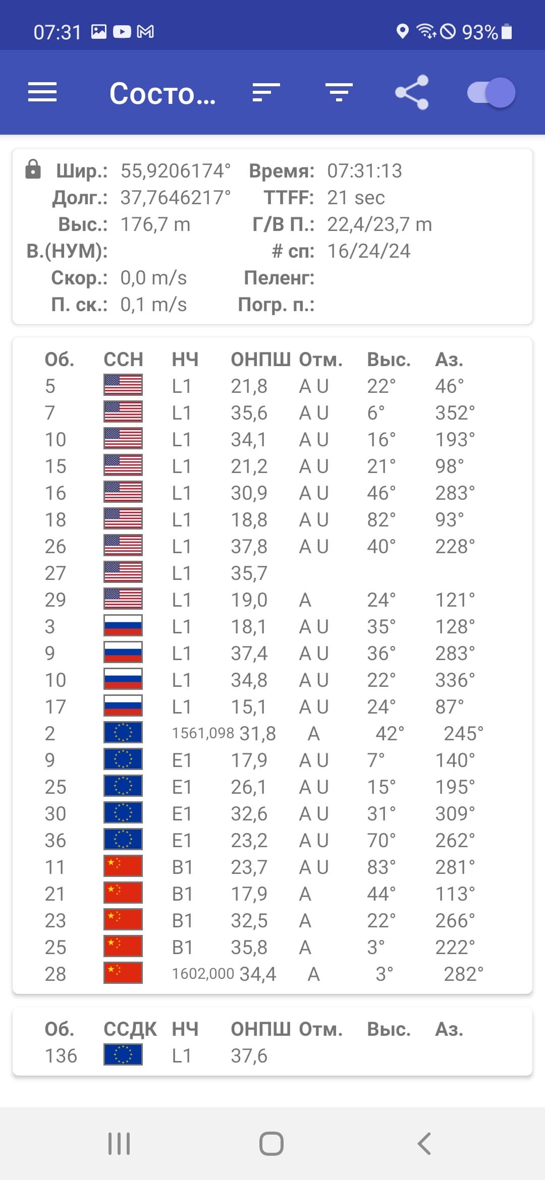 Навигационный модуль работает с GPS (с A-GPS), Глонасс, BDS, Galileo. Первые спутники при холодном старте обнаруживаются быстро, точность позиционирования не вызывает претензий.
