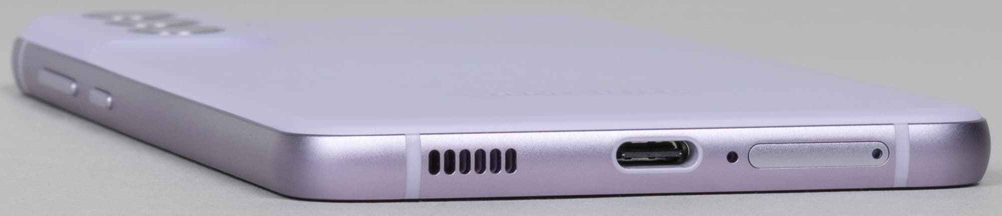 На торце снизу размещены, помимо слота для карт, динамик, микрофон и разъем USB Type-C. На верхнем торце нет ничего. 3,5-миллиметровый аудиовыход для наушников отсутствует.