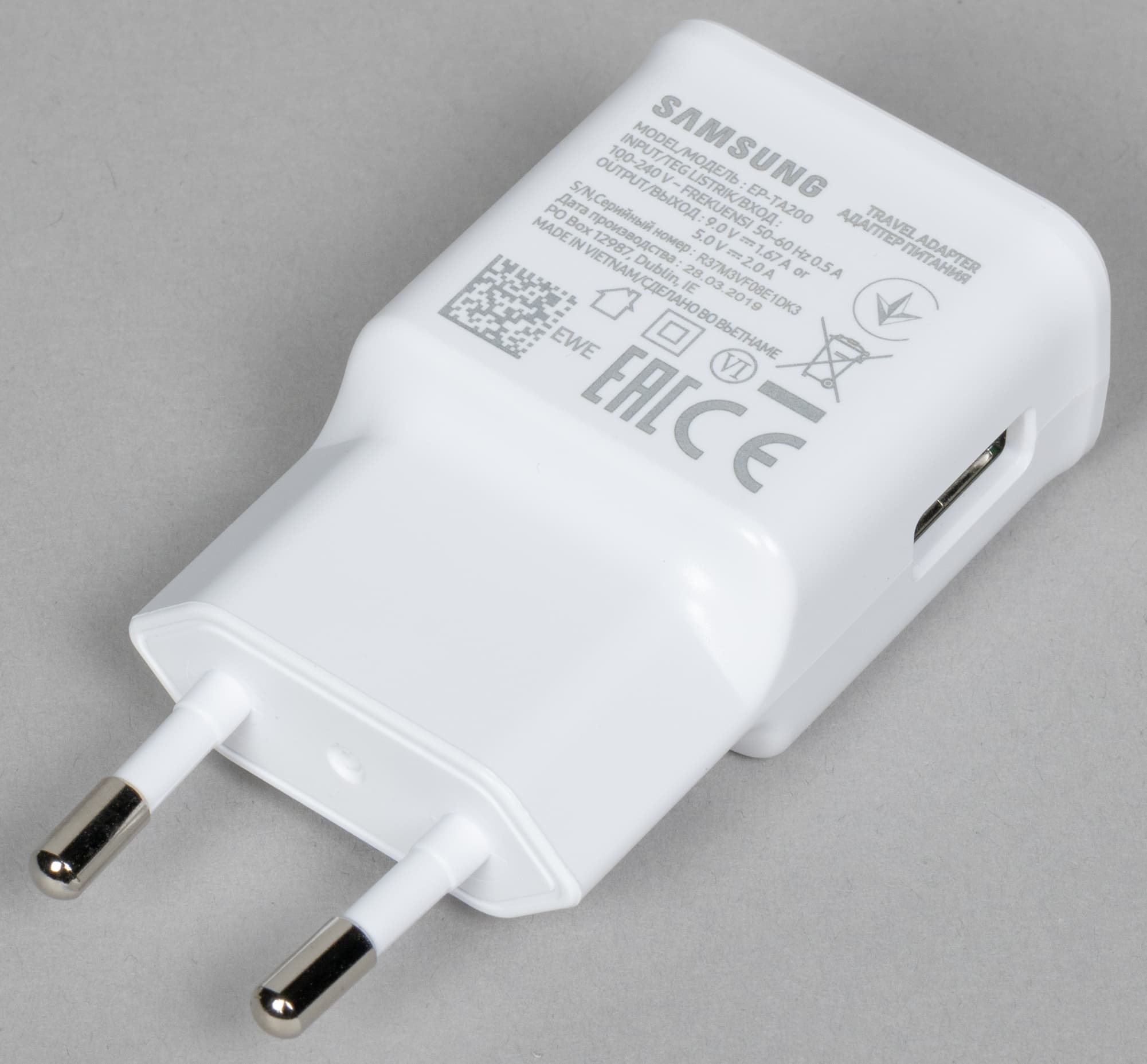 Поддерживается быстрая зарядка на 25 Вт, но на тест устройство прибыло с фирменным travel-адаптером на 15 Вт. От такого устройства смартфон будет заряжаться 1 час 35 минут. Беспроводная зарядка тоже поддерживается (Qi, 15 Вт). Поддерживается и реверсная беспроводная зарядка (например, для наушников, 4,5 Вт).