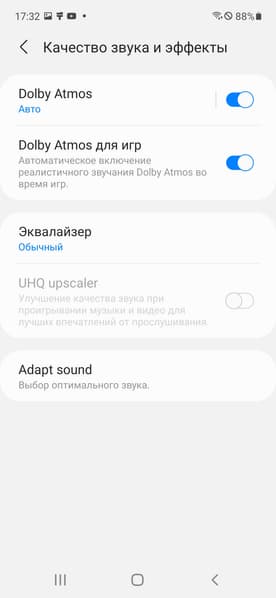 Встроенные стереодинамики звучат чисто, объемно и громко, с приятным на слух набором частот, включая низкие. Играть в игры или смотреть видео на смартфоне в ландшафтной ориентации — одно удовольствие. Поддерживается Dolby Atmos и девятиполосный эквалайзер с пресетами. Для проводных наушников не сохранили 3,5-миллиметровый аудиовыход, но зато для беспроводных наушников поддерживается Bluetooth-кодек aptX HD.