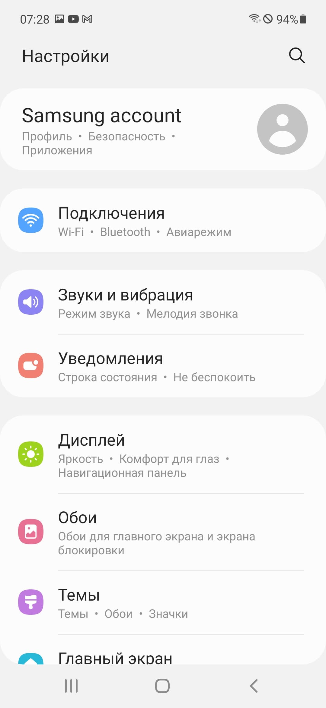 - Сенсорный дисплей Dynamic AMOLED 2X, 6,41″, 1080×2400, 20:9, 411 ppi, 120 Гц