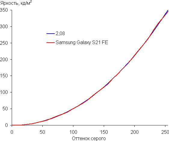 Напомним, что в случае OLED-экранов яркость фрагментов изображения динамично меняется в соответствии с характером выводимого изображения — уменьшается для светлых в целом изображений. В итоге полученная зависимость яркости от оттенка (гамма-кривая), скорее всего, немного не соответствует гамма-кривой статичного изображения, так как измерения проводились при последовательном выводе оттенков серого почти на весь экран.
