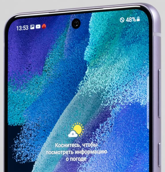 Цветопередача хорошая, цвета в меру насыщенные, цветовой баланс у экранов немного различается. Напомним, что фотография не может служить надежным источником сведений о качестве цветопередачи и приводится только для условной наглядной иллюстрации. В частности, выраженный красноватый оттенок белого и серого полей, присутствующий на фотографиях экрана Samsung Galaxy S21 FE, при перпендикулярном взгляде визуально отсутствует, что подтверждается аппаратными тестами с помощью спектрофотометра. Причина в том, что спектральная чувствительность матрицы фотоаппарата неточно совпадает с этой характеристикой человеческого зрения.