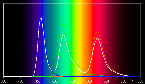 Без коррекции (профиль Насыщенные цвета) спектры компонент очень хорошо разделены (но какое-то подмешивание все же есть):
