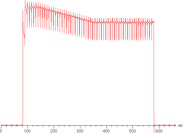 В некоторых условиях наличие такой ступеньки может приводить (и приводит) к шлейфам, тянущимися за движущимися объектами. На графике выше видно, как через несколько десятков миллисекунд начинает снижаться яркость при выводе белого во весь экран.