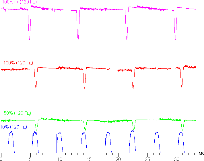 Действительно, в режиме 120 Гц плавность прокрутки повышается. Посмотрим, изменится ли при этом характер модуляции: