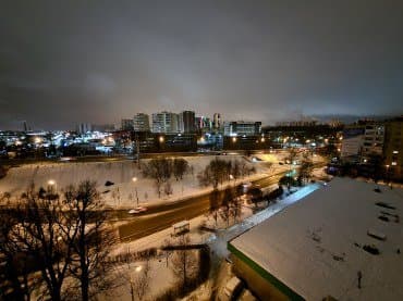 Широкоугольный модуль снимает гораздо хуже. Баланс белого иногда не справляется с обилием снега и уводит снимок в синий спектр (а иногда не уводит). Здесь и детализация ниже, но не это главное. Хуже, что много смазов по краям кадра, и чем хуже условия освещения, тем хуже общая резкость на картинке. Примечательно, что в ночном режиме эти недостатки выправляются — возможно, за счет постобработки. В любом случае, камера довольно невысокого уровня.