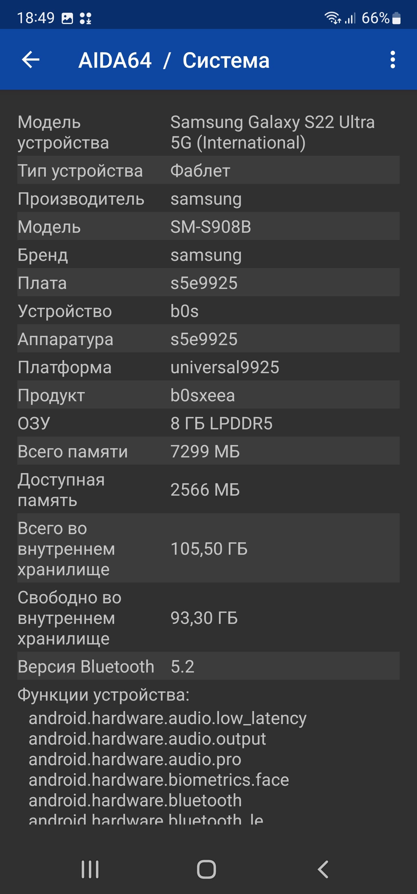 - SoC Exynos 2200, 8 процессорных ядер (1×Cortex-X2 @2,8 ГГц + 3×Cortex-A710 @2,50 ГГц + 4×Cortex-A510 @1,8 ГГц)