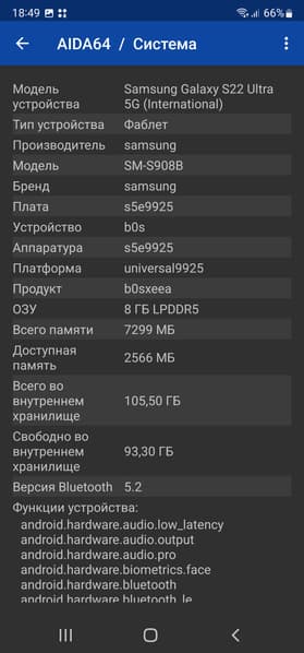 Основные характеристики Samsung Galaxy S22 Ultra (модель SM-S908B)