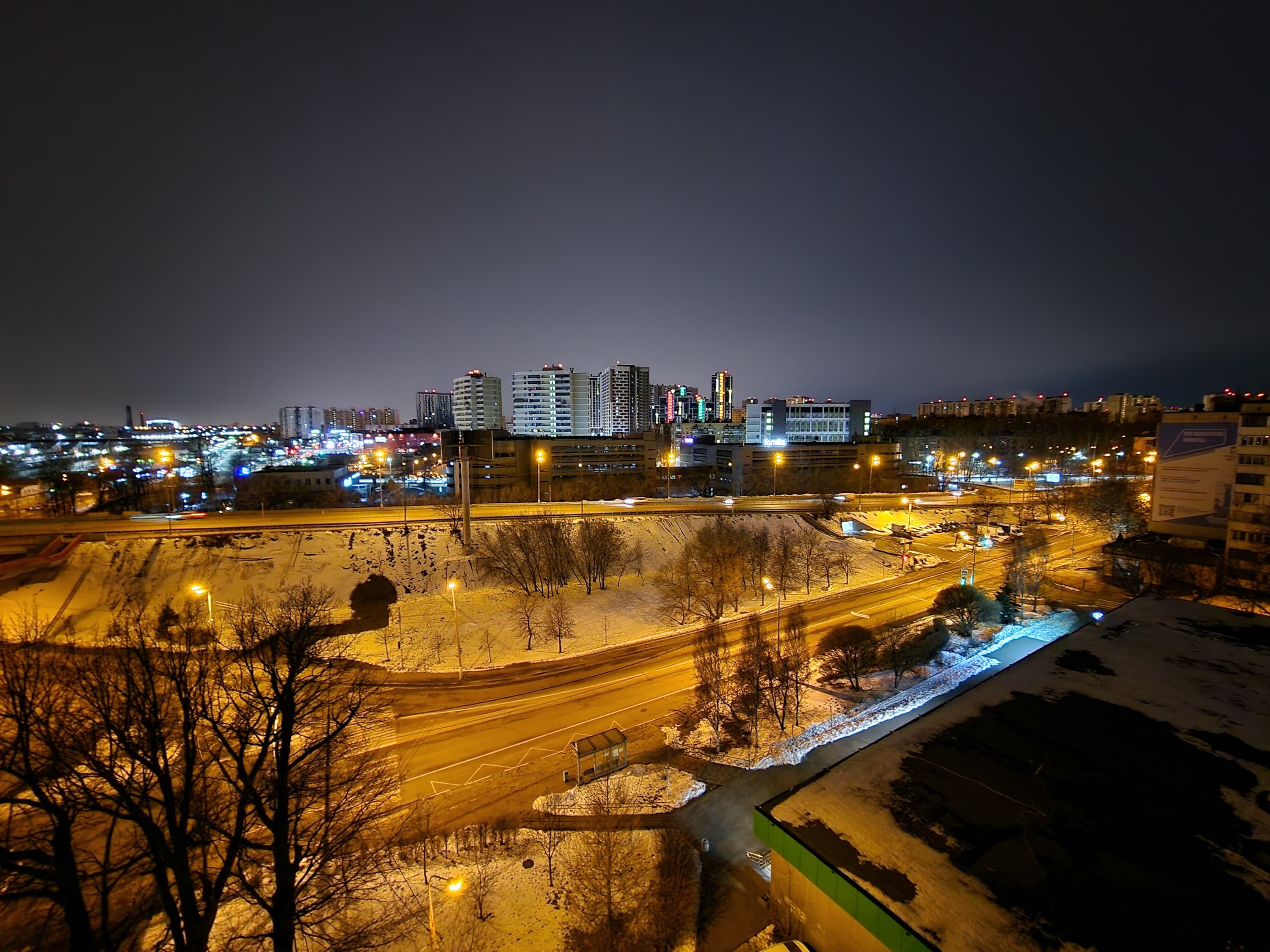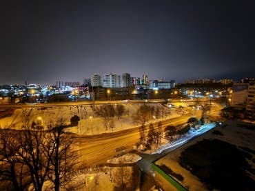 В ночном режиме доступны все те же фокусные расстояния. Качество относительно хорошее: найден баланс между подавлением шумов и уровнем добавленной резкости. Снимки выглядят четкими, но не «дорисованными», к тому же экспозиция не задирается искусственно настолько, чтобы ночной пейзаж стал выглядеть дневным. Источники света не бликуют, оптика качественная.