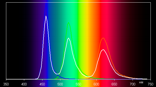 Без коррекции (профиль Насыщенные цвета) спектры компонент очень хорошо разделены:
