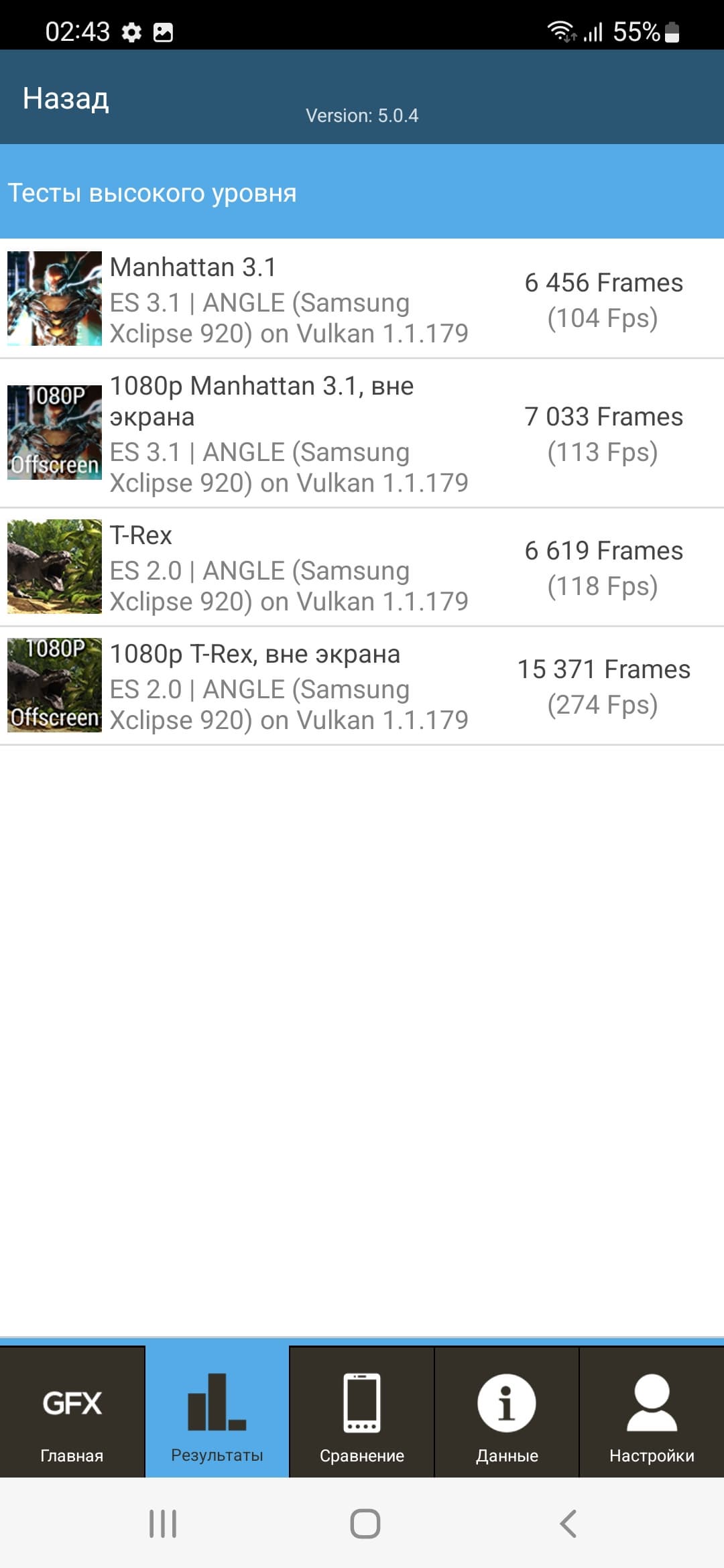| GFXBenchmark T-Rex (1080p Offscreen, fps) | 274 | 229 | 174 | 108 | 268 |