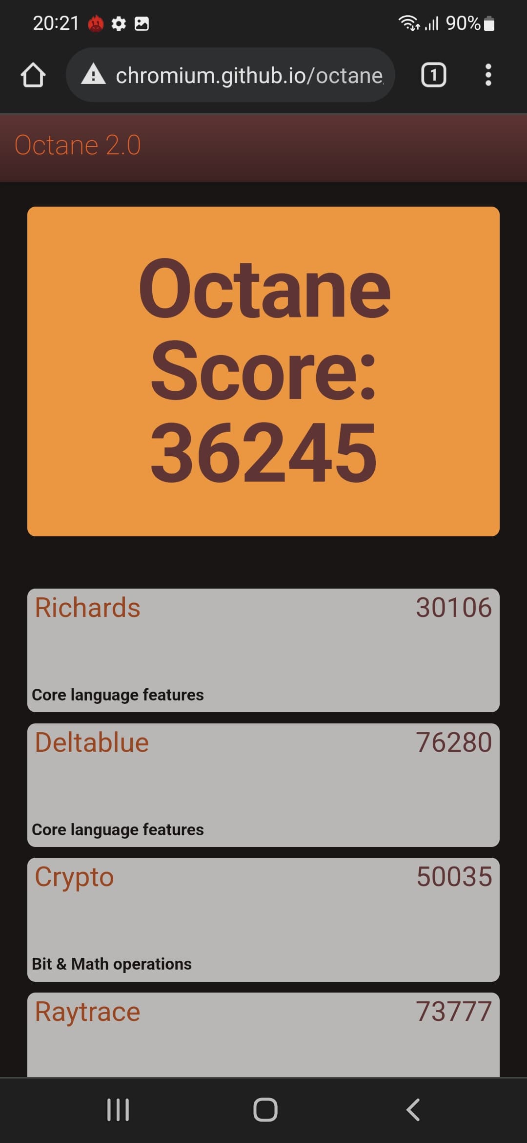 | Google Octane 2 (больше — лучше) | 36245 | 31919 | 15320 | 7257 | 48983 |