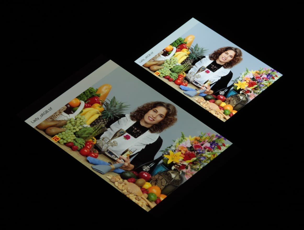 Отметим, что на экранах с широким цветовым охватом (без соответствующей коррекции) цвета́ обычных изображений, оптимизированных для устройств sRGB, выглядят неестественно насыщенными. Отсюда и рекомендация: в большинстве случаев смотреть кино, фотографии и все естественное лучше при выборе профиля Естественные цвета, и только если фотография или видеоматериал сделаны с охватом DCI, принятым в цифровом кинематографе, то имеет смысл переключить профиль на Насыщенные цвета.