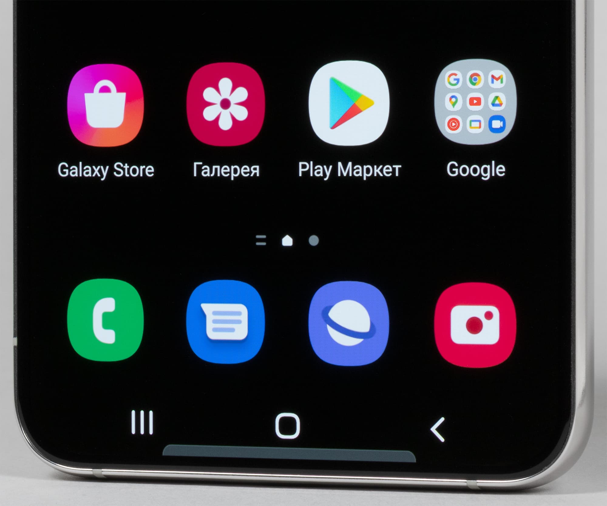 Цветопередача хорошая, цвета в меру насыщенные, цветовой баланс у экранов немного различается. Напомним, что фотография не может служить надежным источником сведений о качестве цветопередачи и приводится только для условной наглядной иллюстрации. В частности, выраженный красноватый оттенок белого и серого полей, присутствующий на фотографиях экрана Samsung Galaxy S22+, при перпендикулярном взгляде визуально отсутствует, что подтверждается аппаратными тестами с помощью спектрофотометра. Причина в том, что спектральная чувствительность матрицы фотоаппарата неточно совпадает с этой характеристикой человеческого зрения.