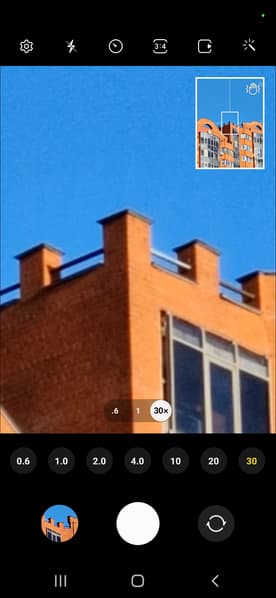 Третий модуль используется для съемки с зумом. Этот модуль обеспечен и автофокусировкой, и 3-кратным оптическим зумом. При трехкратном приближении качество остается на достойном уровне как по детализации, так и по яркости с контрастностью. Максимальное значение зума — 30×, но его можно использовать лишь для передачи общего образа объекта без деталей.