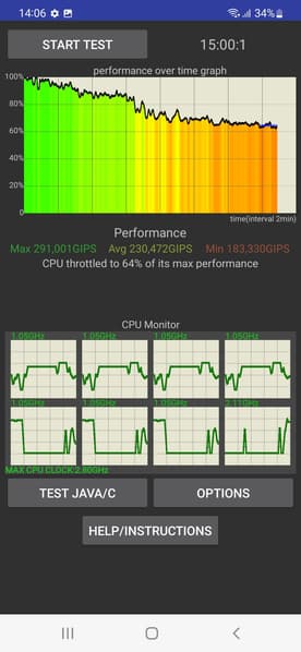Тестирование традиционно проводилось на обычном уровне энергопотребления без использования функций энергосбережения, хотя таковые в аппарате имеются. Условия тестирования: выставлен минимальный комфортный уровень яркости (примерно 100 кд/м²). Тесты: беспрерывное чтение в программе Moon+ Reader (со стандартной, светлой темой); беспрерывный просмотр видео в HD-качестве (720р) через домашнюю сеть Wi-Fi; игра Injustice 2 с автонастройками графики.
