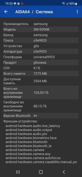 Основные характеристики Samsung Galaxy S22+ (модель SM-S906B)