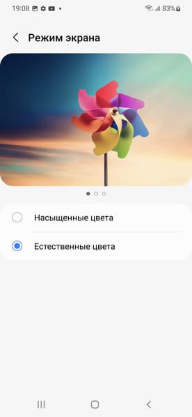 Фотография выше получена после выбора профиля Естественные цвета в настройках экрана, всего их два: