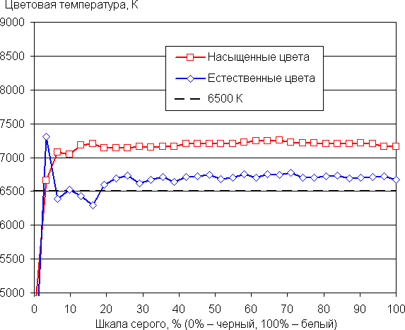 (Самые темные области шкалы серого в большинстве случаев можно не учитывать, так как там баланс цветов не имеет большого значения, да и погрешность измерений цветовых характеристик на низкой яркости большая.)