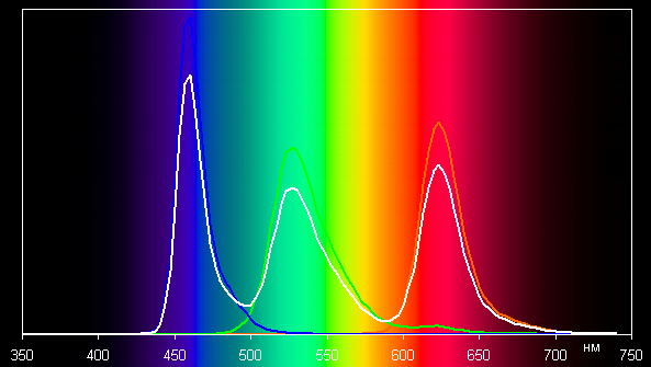 Без коррекции (профиль Насыщенные цвета) спектры компонент очень хорошо разделены (но какое-то подмешивание все же есть):