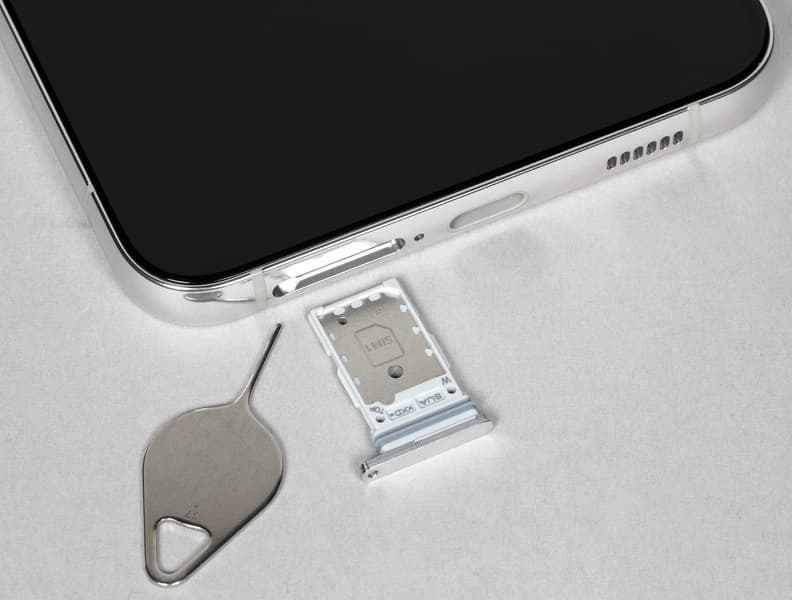В разъем на нижнем торце можно установить две карты Nano-SIM, место для карты памяти microSD не предусмотрено. Поддерживается горячая замена карточек и использование eSIM.