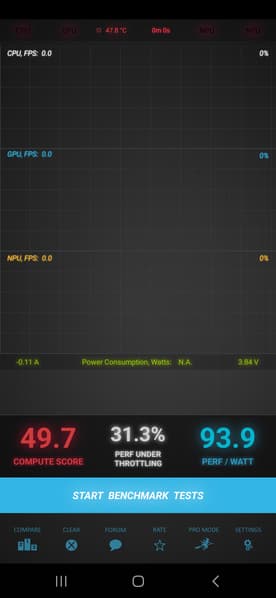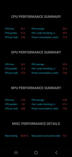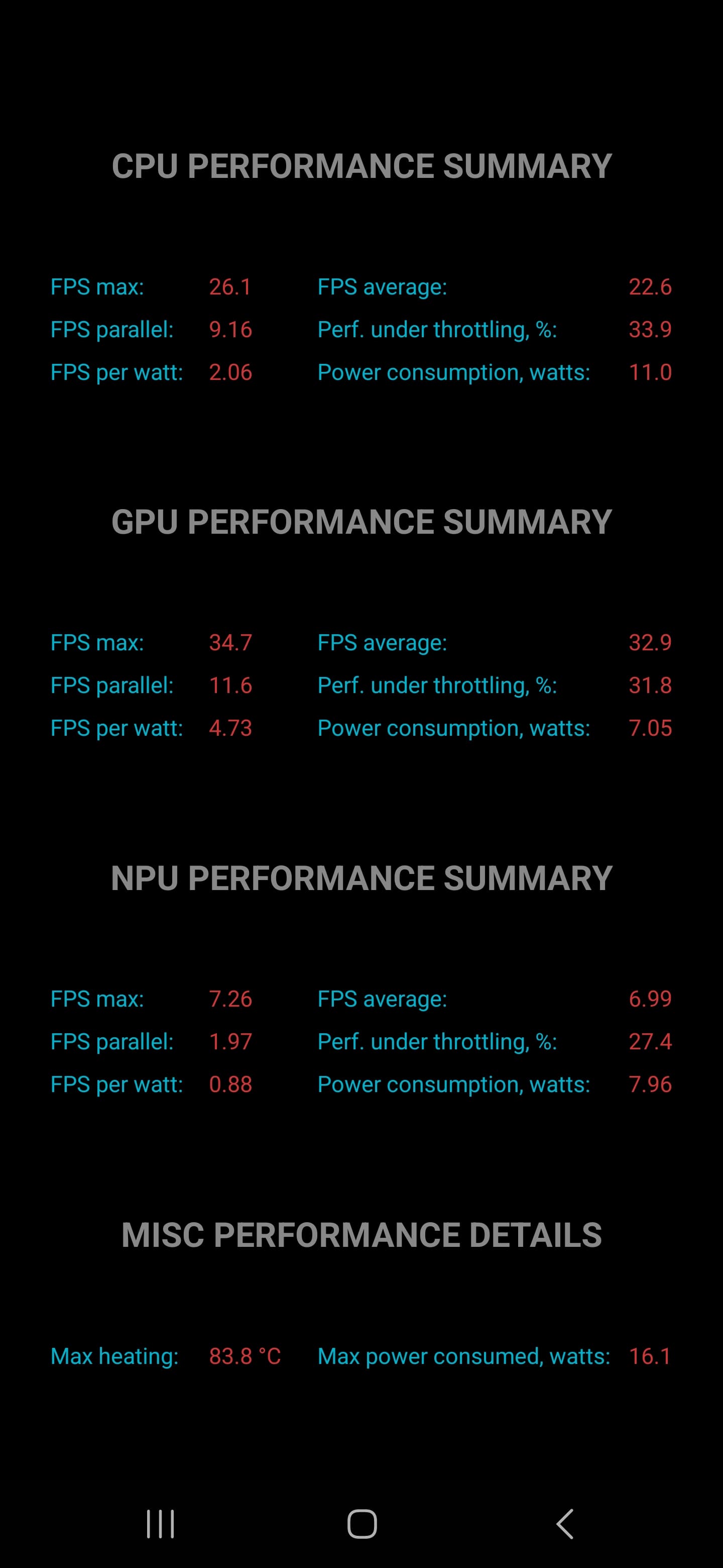 Тест на снижение производительности при нагреве мы проводим с помощью программы Burnout Benchmark, которая позволяет нагружать CPU, GPU и NPU: