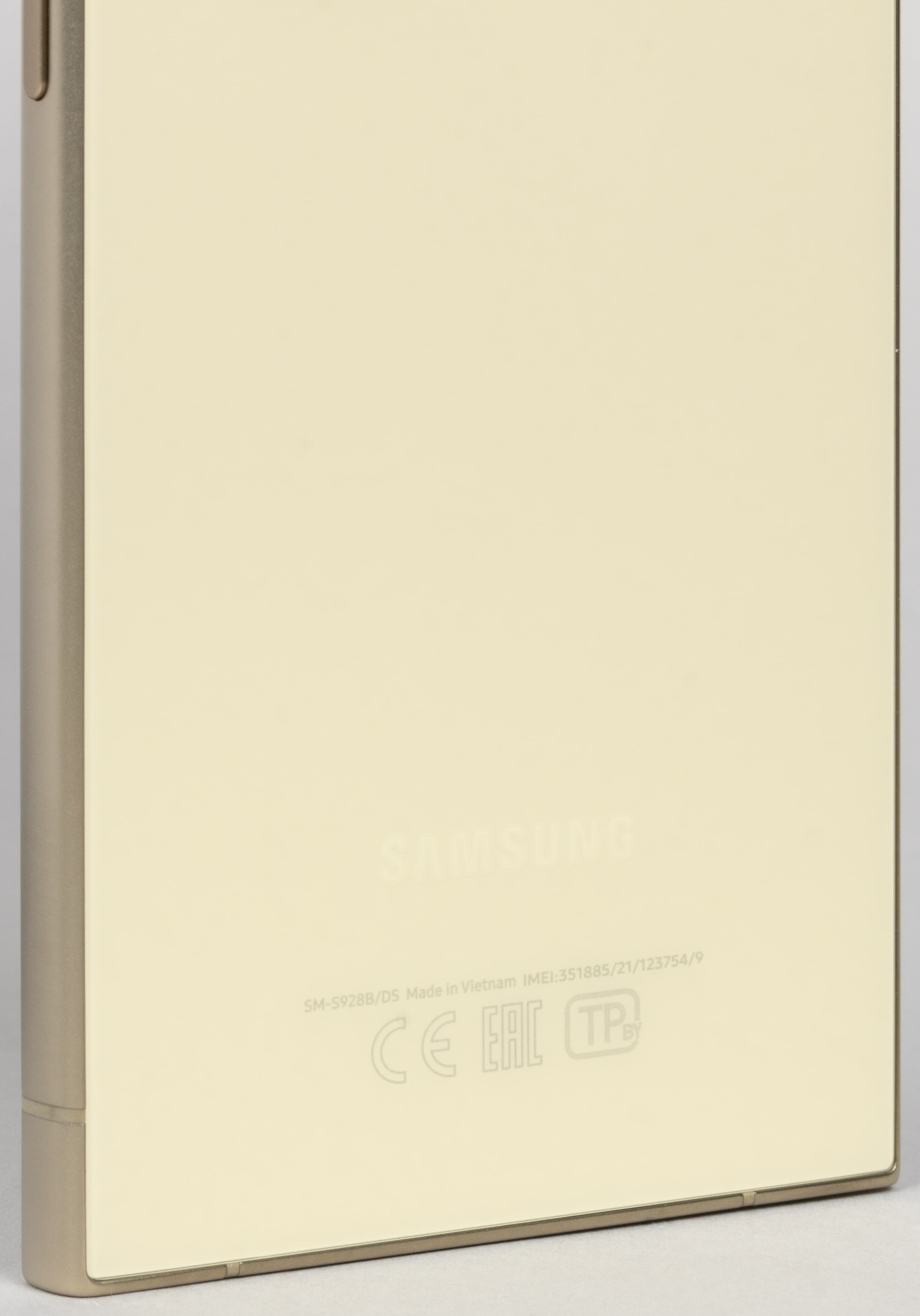 Samsung Galaxy S24 Ultra получил защиту от пыли и влаги по стандарту IP68, что означает возможность полного погружения в пресную воду на глубину до 1,5 метра до получаса. Смартфон выпускается в нескольких цветовых решениях, и все они получили приставку «Titanium», чтобы подчеркнуть наличие «титановой рамки», хотя к собственно цвету титан, конечно же, никакого отношения не имеет. Например, цвет нашего тестового образца зовется «Titanium Yellow».