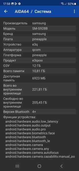 Платформа свежая, флагманская, топового уровня, выполнена по техпроцессу 4 нм. Версия SoC, установленная в Samsung Galaxy S24 Ultra, отличается от стандартной версии этой платформы более высокими тактовыми процессорными частотами. Это привело и к модернизации системы охлаждения с испарительной камерой, увеличенной почти в 2 раза относительно Galaxy S23 Ultra.