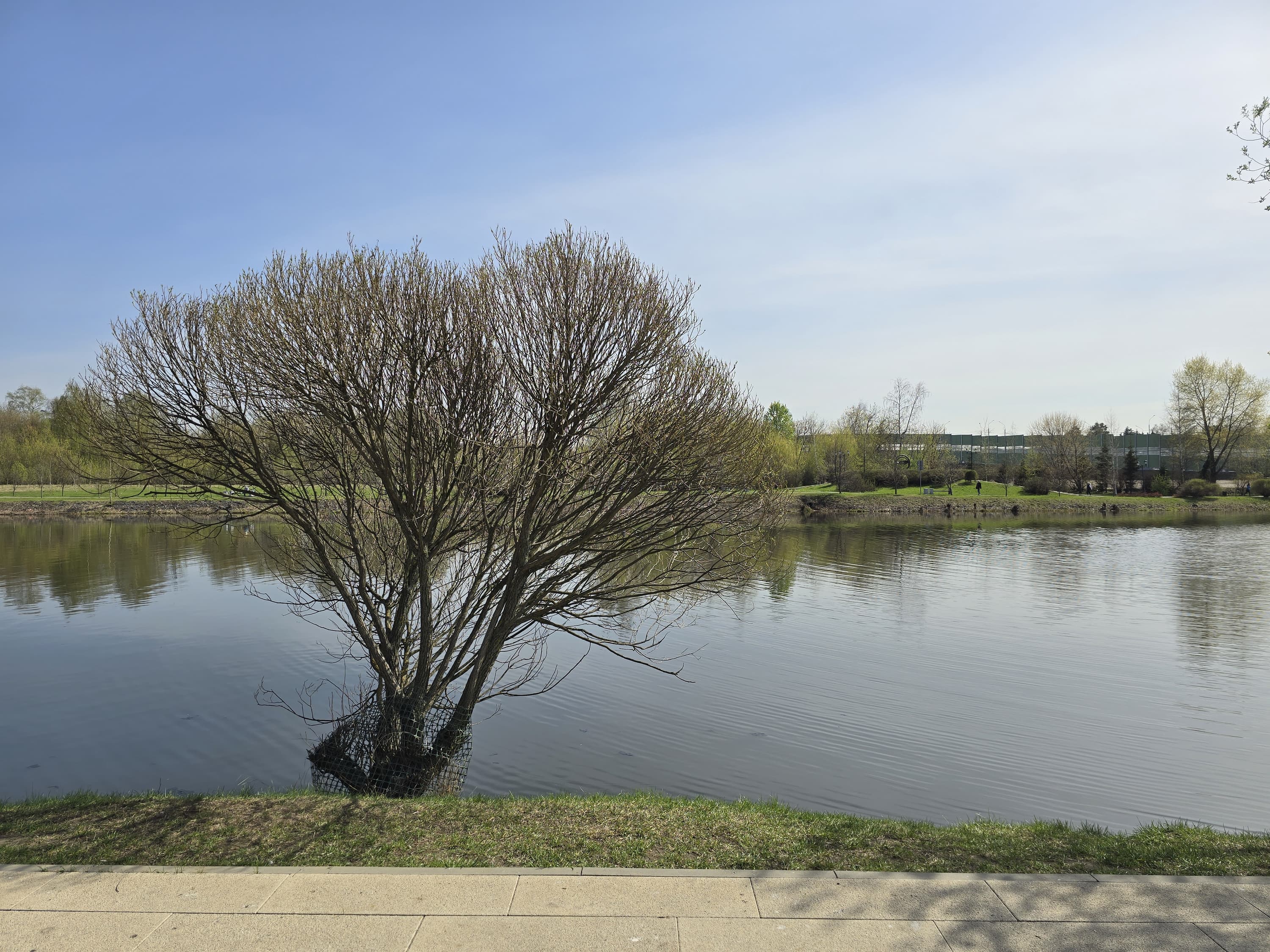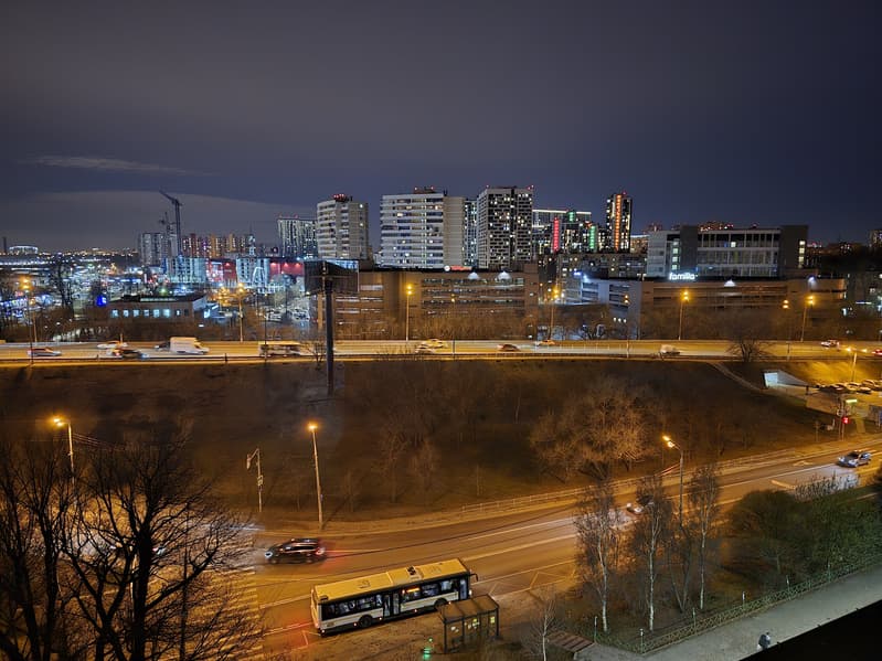 Если же говорить о самом ходовом разрешении, то тут, как всегда, вступает в дело очень специфическая обработка фото у Samsung. Такого точно нет больше ни у кого. Шарпинг просто адский, и если вы соберетесь снимать природу, пока на деревьях еще нет листьев, то готовьтесь видеть чрезвычайно жирные ветки и кашу из тонких веточек. Конечно, этот прием повышает визуальную резкость, но он также делает изображение неестественным. Тот факт, что камера обеспечивает вполне приличное разрешение даже на снимках 200 Мп, позволяет, казалось бы, надеяться, что при объединении пикселей аж 16:1 с мелкими деталями всё будет идеально, не останется ни следа от шумов. Шумов действительно не остается, но вместе с тем все однотонные поверхности заливаются одним цветом, что создает совсем неестественную картинку при съемке, например, типичных многоэтажек с отчетливым цветным рисунком на фасадах. Разумеется, есть и удачные для такой обработки сценарии, и они даже, возможно, более жизненные, но такой агрессивной обработки от фотографий флагманского смартфона точно не ждешь.