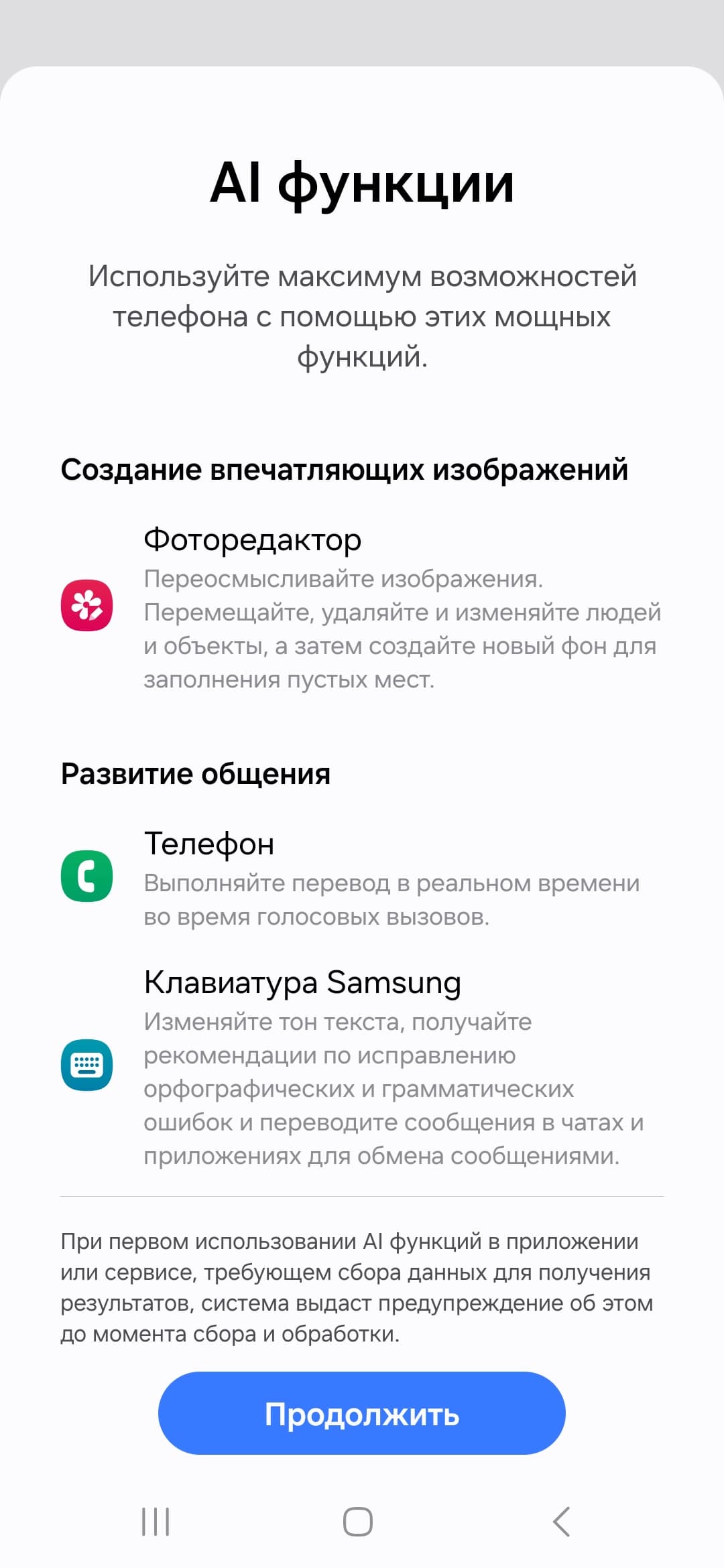 В качестве программной платформы Samsung Galaxy S24 Ultra использует ОС Android 14 с оболочкой One UI 6.1. В новом сезоне разработчики сделали упор на поддержку ИИ, расширив его внедрение в некоторые приложения и дав несколько новых инструментов в руки пользователю. Например, можно запустить функцию редактирования фотографий в галерее, выделяя, вырезая и перемещая любые объекты на картинке. Контекстный поиск в Google осуществляется также путем выделения объекта на любом экране. Можно попросить ИИ сгенерировать текст или сократить длинный текст. Добавлен встроенный переводчик, который можно использовать прямо на лету во время телефонных разговоров. Жаль только, что всё это не работает без регистрации аккаунта Samsung.
