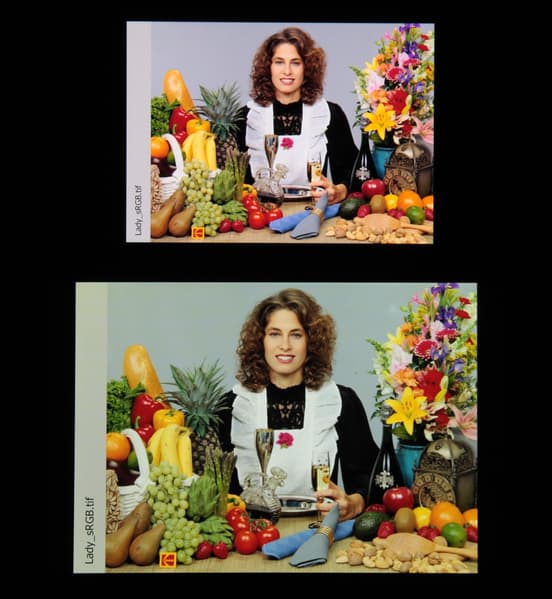 Отметим, что на экранах с уширенным цветовым охватом (без соответствующей коррекции) цвета́ обычных изображений, оптимизированных для устройств sRGB, выглядят неестественно насыщенными. Отсюда и рекомендация: в большинстве случаев смотреть кино, фотографии и все естественное лучше при выборе профиля Естественные цвета.