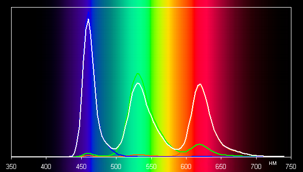 Компоненты цветов подмешиваются друг к другу, что и сужает цветовой охват, но в случае профиля Естественные цвета подмешивание больше: