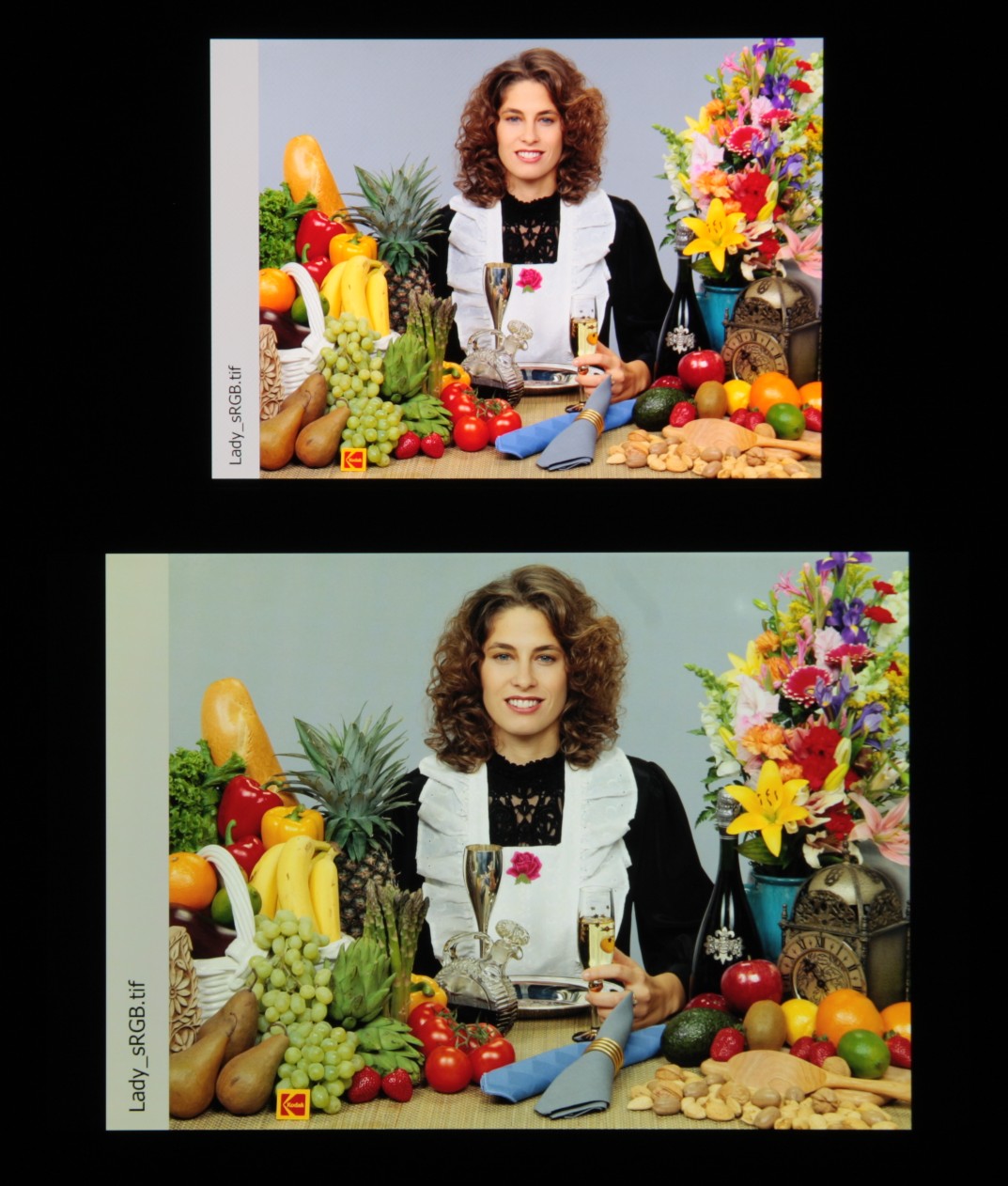 Отметим, что на экранах с уширенным цветовым охватом (без соответствующей коррекции) цвета́ обычных изображений, оптимизированных для устройств sRGB, выглядят неестественно насыщенными. Отсюда и рекомендация: в большинстве случаев смотреть кино, фотографии и все естественное лучше при выборе профиля Естественные цвета. При этом, если в изображении прописан отличный от sRGB профиль, то смотреть его лучше с использованием штатной программы Галерея.