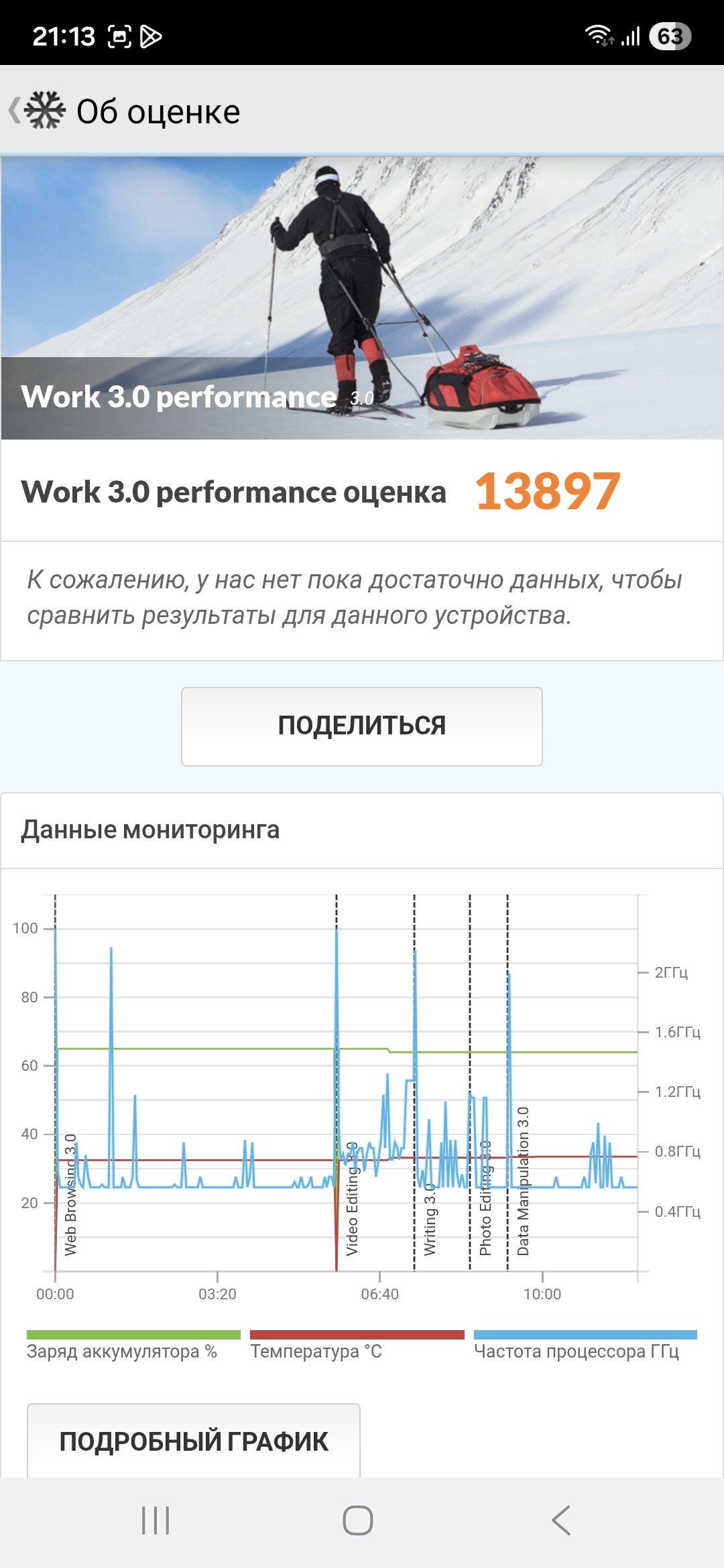 Тест на снижение производительности при нагреве мы проводим с помощью программы Burnout Benchmark, которая позволяет нагружать CPU, GPU и NPU. Уровень тротлинга, согласно тестам, действительно высокий.