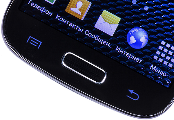 Остальное в корпусе Samsung Galaxy S4 mini Black Edition не изменилось: все та же покрытая стеклом передняя защитная панель с аппаратной вытянутой кнопкой, все тот же ободок по периметру, имеющий вид металлического, но на самом деле являющийся окрашеным пластиком.