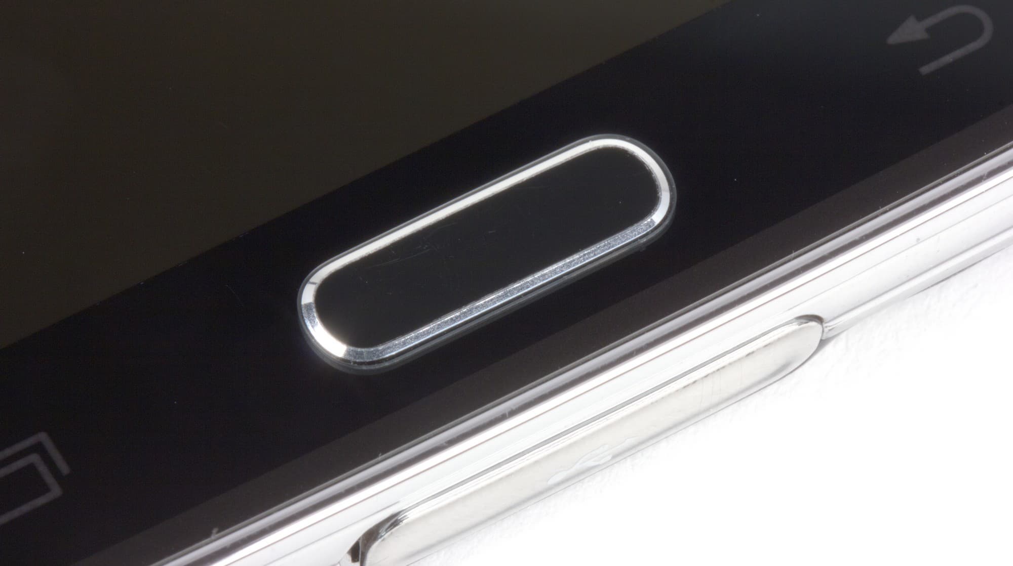 Передняя панель не претерпела значительных изменений — это вполне узнаваемый элемент всех мобильных аппаратов Samsung. Выделяется он, прежде всего, своей продолговатой механической клавишей под экраном, которая в этот раз получила дополнительную функциональность. Эта кнопка еще и отвечает за сканирование отпечатка пальца — теперь никто не сможет упрекнуть корейцев в том, что у них нет золотистого смартфона со сканером отпечатков пальцев. В отличие от сканера iPhone, здесь палец нельзя просто прикладывать: неоходимо проводить им вдоль клавиши, да еще и с нужной скоростью — если поторопиться, то можно потерпеть неудачу. В этом плане сканер iPhone выглядит предпочтительнее: там не только не нужно двигать пальцем, но еще и можно прикладывать палец к кнопке под любым углом, что позволяет держать аппарат любым удобным хватом. В случае со сканером Samsung Galaxy S5 придется одной рукой держать устройство, а другой проводить по сенсору, что весьма утомительно, и большинство пользователей, скорее всего, эту функцию просто отключат.