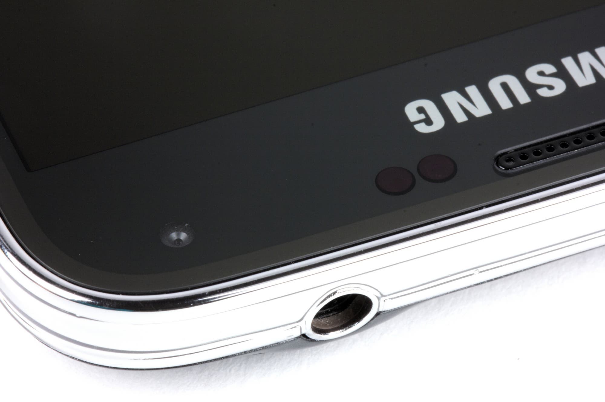 Из-за небольшого различия в цветовом тоне отражения и рамок трудно визуально оценивать величину уменьшения яркости отражения, впрочем, статистика из графического редактора показывает, что экран у S5 действительно чуть-чуть темнее, чем у Nexus 7. Двоение отраженных объектов очень слабое, это свидетельствует о том, что между слоями экрана нет воздушного промежутка. На внешней поверхности экрана есть специальное олеофобное (жироотталкивающее) покрытие, (очень эффективное, может немного лучше, чем у Google Nexus 7), поэтому следы от пальцев удаляются существенно легче, а появляются с меньшей скоростью, чем в случае обычного стекла.