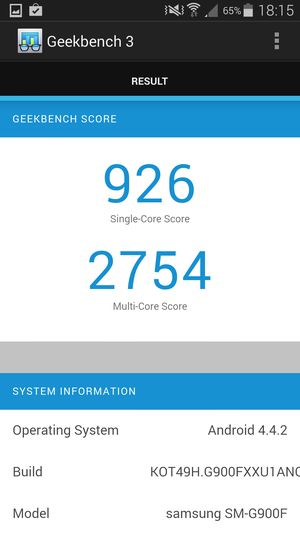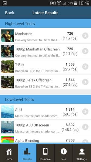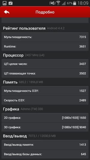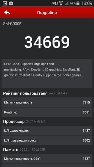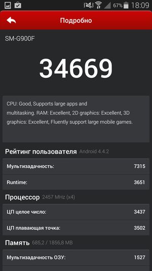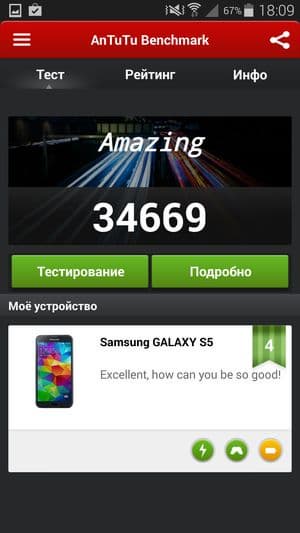 Кстати, что касается этих самых результирующих цифр: поскольку тестируемый сегодня смартфон является знаковым устройством, и на него в течение всего года будут равняться остальные, то, наверное, стоит напомнить свежую расстановку сил. Если опираться на цифры популярного бенчмарка AnTuTu, это выглядит приблизительно так: восемь ядер MediaTek MT6592 с частотой 2 ГГц демонстрируют в данном тесте 31К очков (26 тысяч баллов у восьмиядерных Zopo 998 и THL T100S с меньшей частотой процессорных ядер — 1,7 ГГц), и около 35 тысяч — у топовых смартфонов, таких как LG G2, Sony Xperia Z1, Acer Liquid S2 и вот теперь Samsung Galaxy S5, построенных на аппаратной платформе Qualcomm Snapdragon 800/801. Напрашиваются два основных вывода, полученных в результате всех этих сравнений: TCL Idol X+ — это первый смартфон на платформе MediaTek, который сумел практически вплотную подобраться к лидирующим решениям на Qualcomm, пусть и за счет вдвое большего количества процессорных ядер. И второй: новая версия топовой платформы Qualcomm практически не принесла прироста в производительности, хотя и это микроскопическое превосходство позволило ей еще прочнее закрепиться на пьедестале почета в качестве безоговорочного лидера среди платформ для мобильных устройств. Согласно сказанному, смартфон Samsung Galaxy S5 на платформе Qualcomm Snapdragon 801 является на текущий момент одним из самых мощных смартфонов на планете.