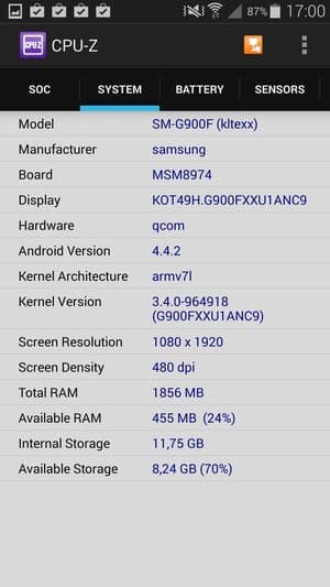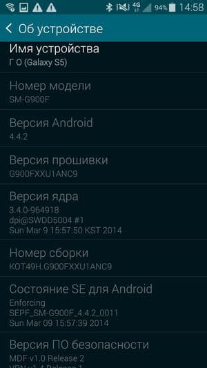 Основные характеристики Samsung Galaxy S5 (модель SM-G900F)