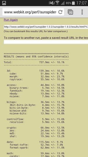 Что касается бенчмарков для оценки скорости движка javascript, то стоит всегда делать скидку на то, что в них результаты существенно зависят от браузера, в котором запускаются, так что сравнение может быть истинно корректным только в одинаковых ОС и браузерах, а такая возможность имеется при тестировании не всегда. В случае с ОС Android мы всегда стараемся использовать Google Chrome.