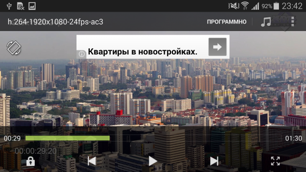 | Формат | Контейнер, видео, звук | MX Video Player | Штатный видеоплеер |