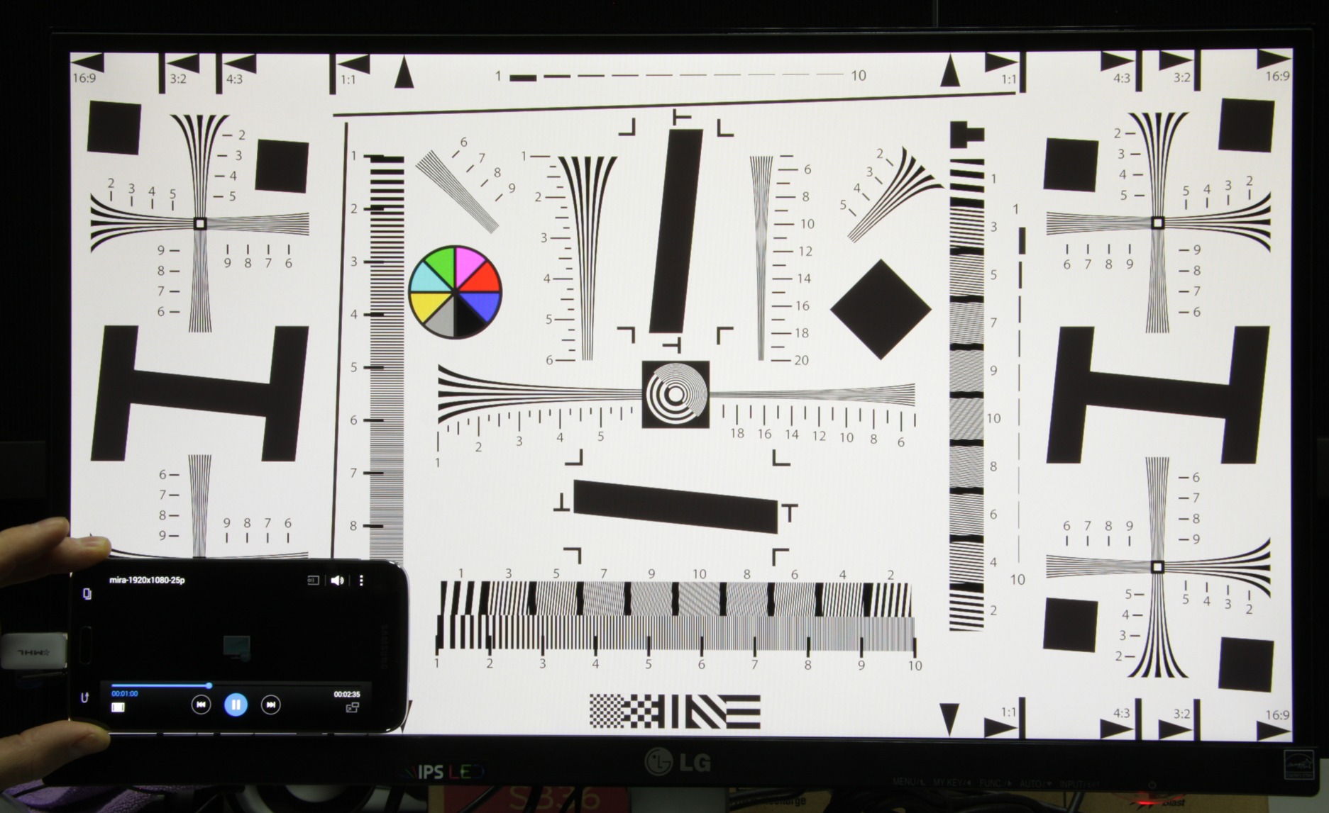Результаты тестов вывода на монитор приведены в таблице выше в блоке «MHL (вывод на монтор)». Качество вывода очень хорошее. При воспроизведении видеофайлов с разрешением Full HD (1920 на 1080 пикселей) на экране монитора изображение собственно видеофайла выводится точно по границе экрана с сохранением истинных пропорций, и разрешение соответствует разрешению Full HD. Отображаемый на мониторе диапазон яркости равен стандартному диапазону 16—235, то есть в тенях и в светах отображаются все градации оттенков.