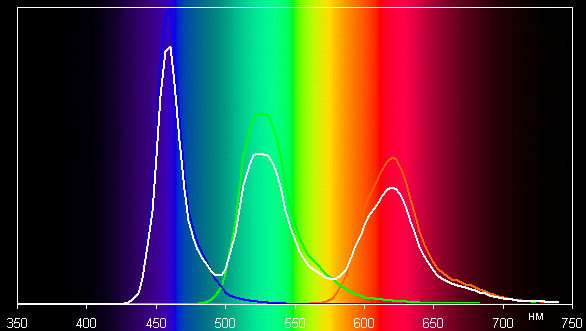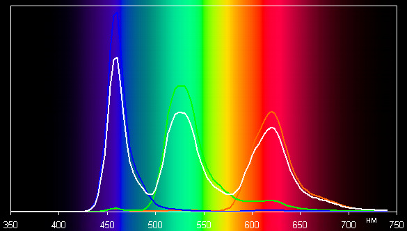 В случае профиля Кинотеатр с максимальной коррекцией компоненты цветов уже немного подмешиваются друг к другу: