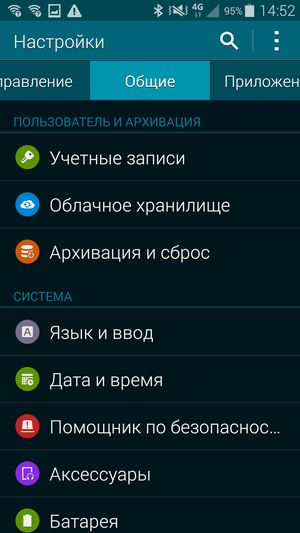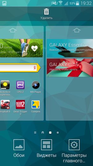 В качестве системы используется программная платформа Google Android свежей версии 4.4.2 (Kitkat) и фирменный графический пользовательский интерфейс TouchWiz, внешний вид которого претерпел изменения. Он стал, согласно новой моде, более «плоским», что явно пошло ему на пользу, хотя традиционная азиатская аляповатость осталась. Изменился внешний вид меню настроек: теперь все иконки имеют вид абсолютно одинаковых кружков и расположены они в виде единого длинного списка. Но, естественно, отображение меню можно поменять, приведя к старому виду с вертикальными вкладками. В этом случае их будет уже не четыре, как раньше, а целых шесть. В целом новый вид интерфейса и меню настроек понравился больше, чем старый: все причесано, упорядочено, симметрично, работа с различными подразделами меню стала интуитивно более понятной. Меню установленных приложений не претерпело значительных изменений, но теперь на рабочий экран можно вывести специальную кнопку, по нажатию на которую открывается контекстное меню с быстрым доступом к самым востребованным приложениям. Меню уведомлений получило две дополнительных выделенных овальных кнопки быстрого перехода к поиску по всему смартфону и включению функции быстрого подключения к знакомым устройствам.